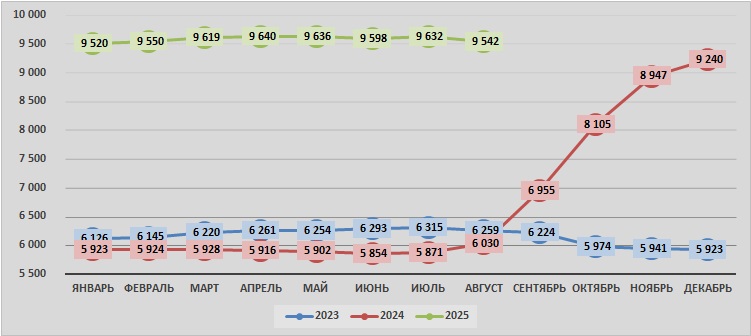 В августе 2025г. икра лососевых рыб в России* стоила в среднем 9 542 руб./кг - это на 0,9% меньше, чем в предыдущем месяце, и в 1,58 раза больше, чем в августе 2024 года. С начала года цена выросла на 0,2%.