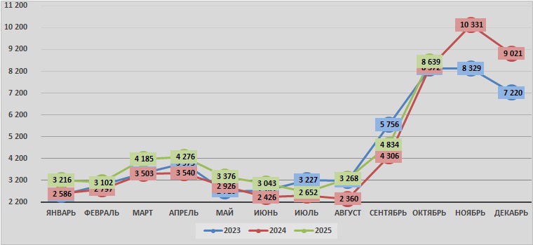 | сентябрь | 5 756 | 4 306 | 4 834 |