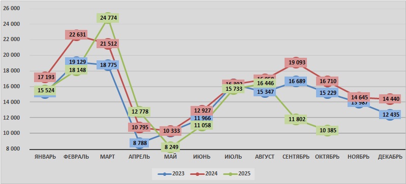 | октябрь | 15 229 | 16 710 | 10 385 |