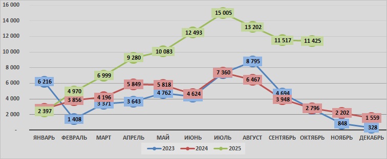 | октябрь | 2 757 | 2 796 | 11 425 |
