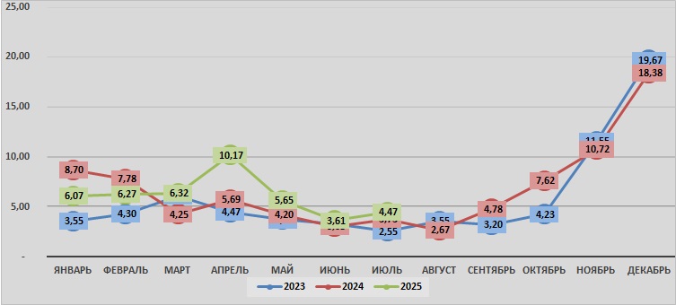 июль | 2,55 | 3,73 | 4,47 |