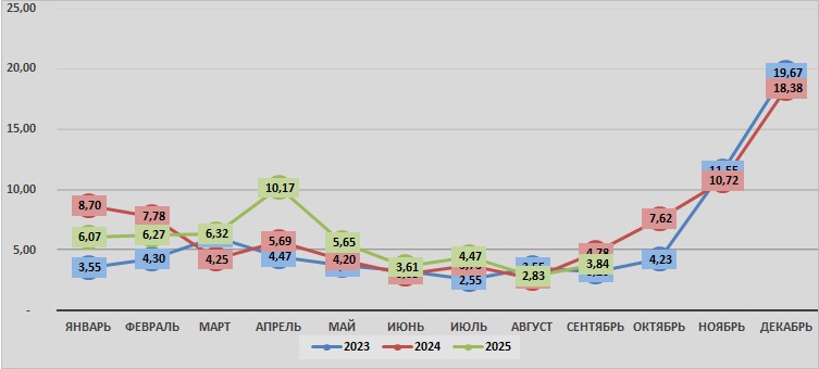 | сентябрь | 3,20 | 4,78 | 3,84 |