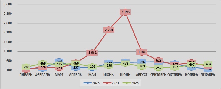 В декабре 2025г. в России** произвели 434 тонны кормов из рыбы - это на 6,6% больше, чем месяцем ранее, и в 1,34 раза больше, чем в декабре 2024г.