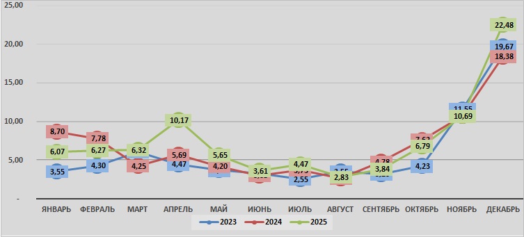 | ноябрь | 11,55 | 10,72 | 10,69 |